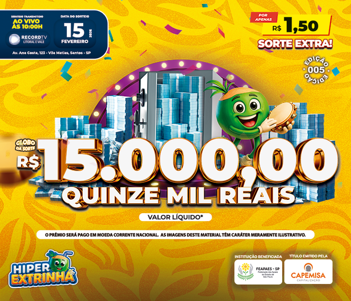 Juntos, o Hiper Cap Litoral e a FEAPAES-SP transformam esperança em ação, oferecendo a chance de concorrer a prêmios incríveis e, ao mesmo tempo, contribuir com um dos maiores centros de tratamento onco-hematológico pediátrico gratuito da América Latina.