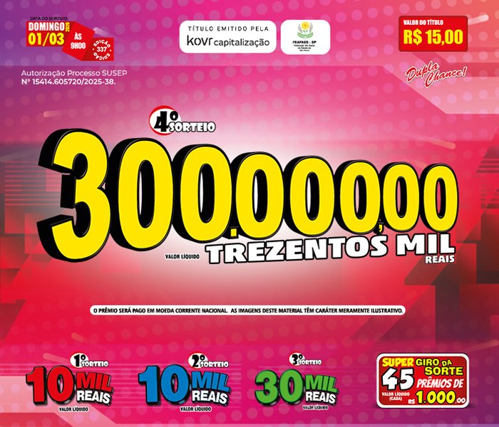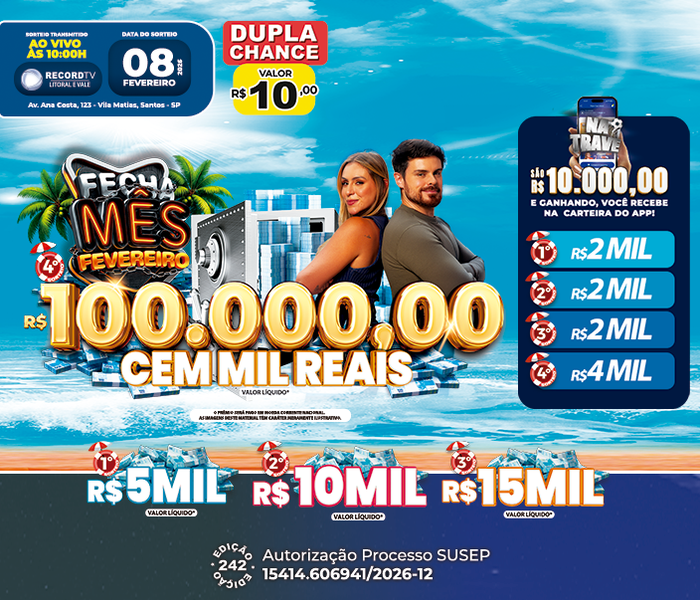 Os sorteios ocorrem ao vivo todos os Domingos, à partir das 10h00, com transmissão pela RECORD LITORAL, VALE e Youtube.