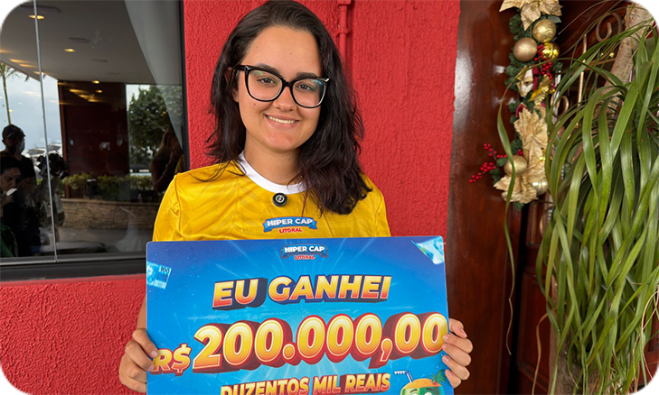 A estudante de Direito Julia Z. A., de 20 anos, moradora do Guarujá, está vivendo um momento daqueles que parecem ter saído de um filme. Ela comprou o Hiper Cap Litoral pela primeira vez e foi contemplada com 200 mil reais, no dia 7 de dezembro. A sortuda conta que jamais imaginou que um dia seria premiada com um prêmio desses.
